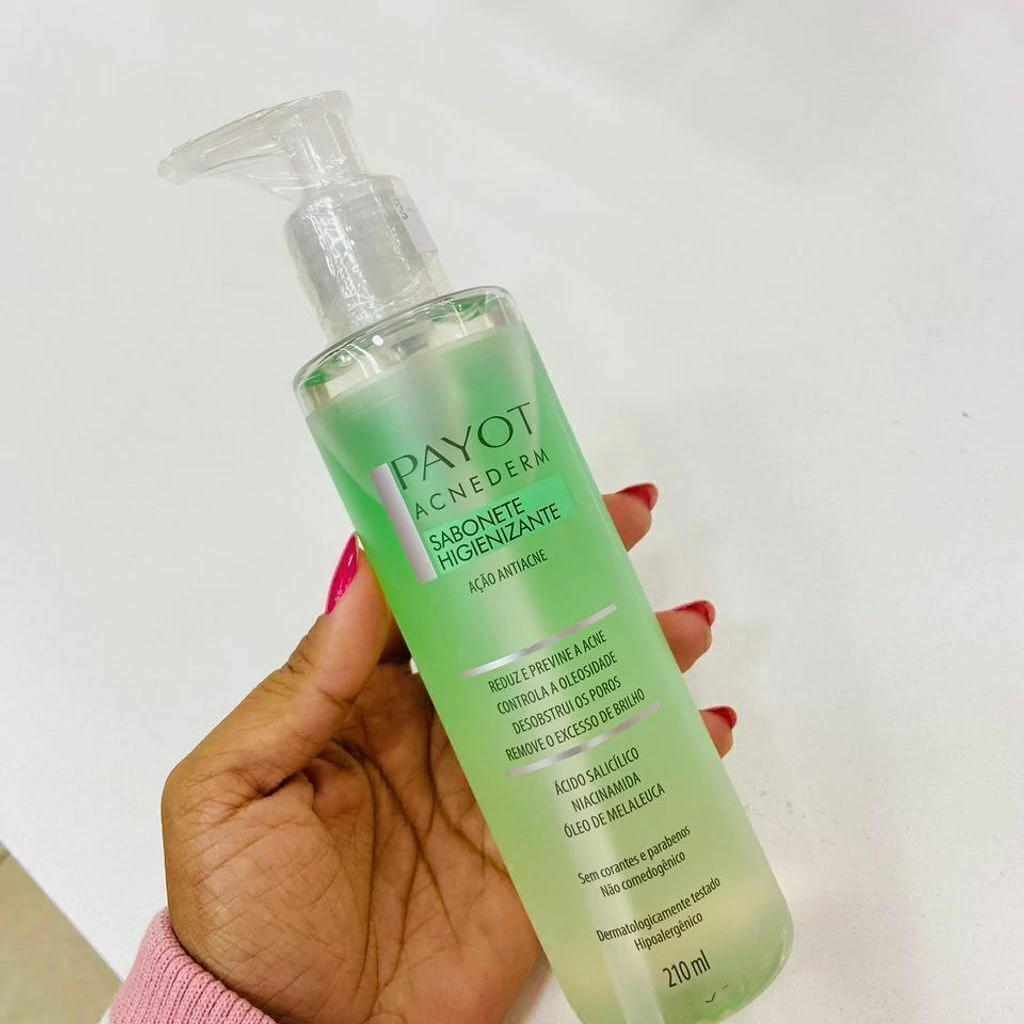 O Sabonete Higienizante Acnederm Payot, foi formulado com Ácido Salicílico, Niacinamida e Óleo de Melaleuca, que conferem limpeza profunda eliminando as impurezas, sem irritar ou ressecar a pele. Controla a oleosidade excessiva, deixando a pele limpa e hidratada ao longo do dia. Desobstrui os poros. Diminui a vermelhidão e o inchaço causado pela acne. Seu uso contínuo ajuda na prevenção de formação de cravos e espinhas. Pele macia e com viço natural. Sensação refrescante.